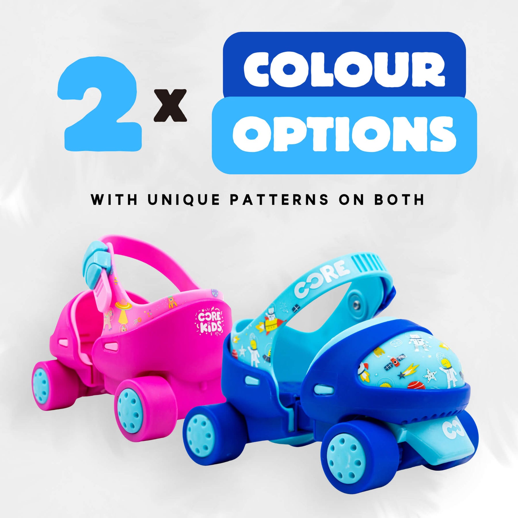Get your child rolling with the CORE Kids Stomp & Roll Adjustable Learner Skate, now available in two vibrant color options: Pink and Blue! Designed for growing feet, these skates adjust from EU sizes 22-30 (UK C5-C12), providing the perfect fit as your child grows.