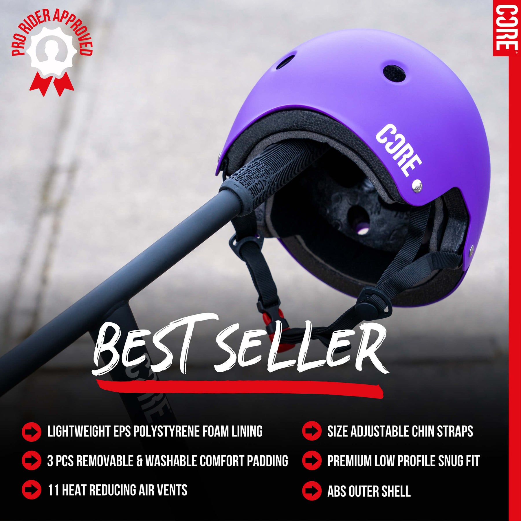 CORE Action Sports BMX Helmet Purple I Skateboard Helmet Buckel