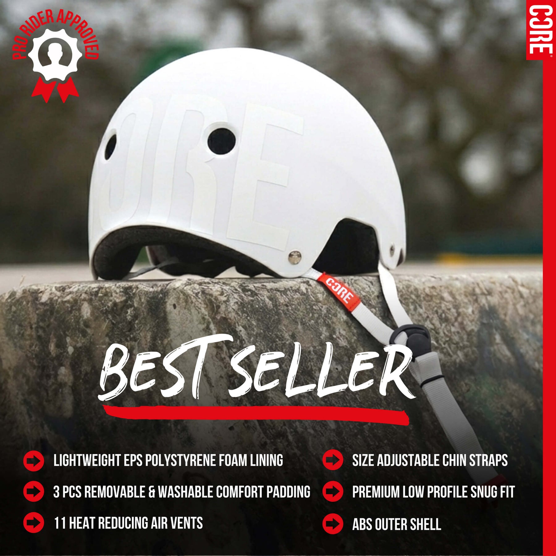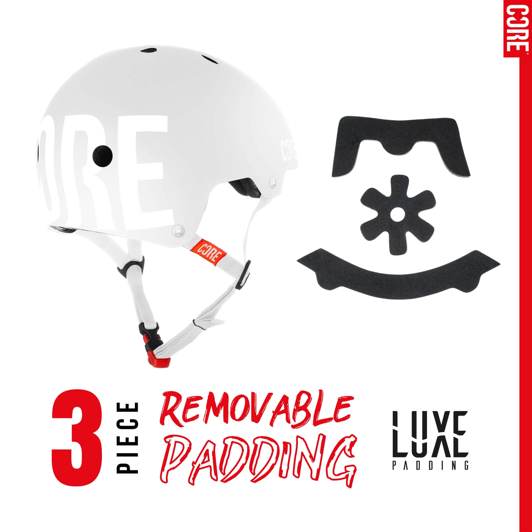 Alle CORE-Helme sind aus einem leicht stoßabsorbierenden Material namens EPS (expandiertes Polystyrol) hergestellt. Es ist so konzipiert, dass es bei starken Stößen komprimiert wird, bricht und reißt, damit Ihr Kopf nicht beschädigt wird! Ihr Helm ist nicht dafür ausgelegt, mehreren schweren Stößen standzuhalten, und Sie MÜSSEN Ihren Helm nach einem schweren Aufprall ersetzen. Obwohl das Äußere des Helms von außen vollkommen in Ordnung aussehen kann, kann die EPS-Struktur nach einem schweren Aufprall beschädigt sein. Bitte ersetzen Sie Ihren Helm nach einem schweren Aufprall zu Ihrer eigenen Sicherheit.