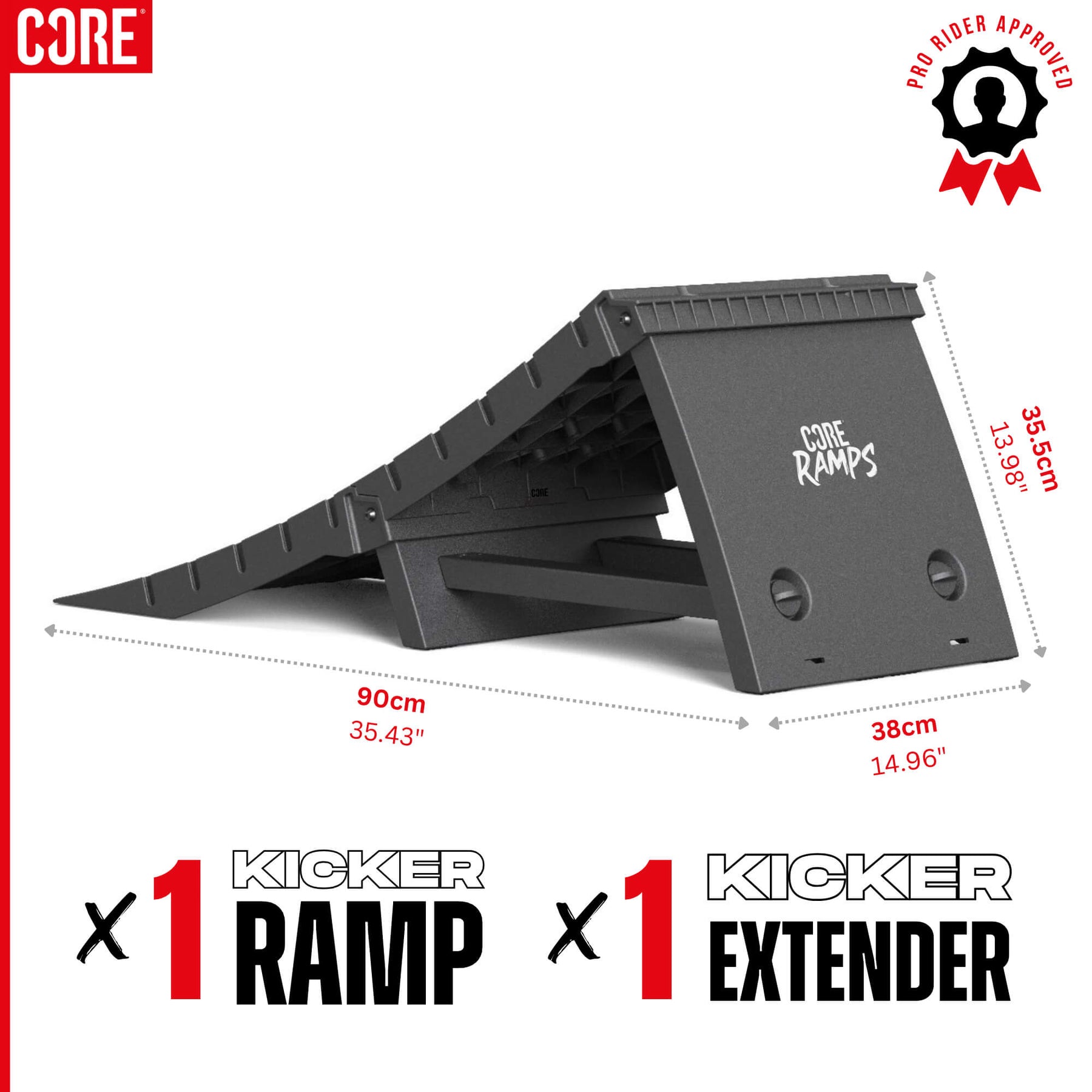 1 x XL Kicker Ramp Extender – Easily attach to your CORE Mini Kicker Ramp for extra length.